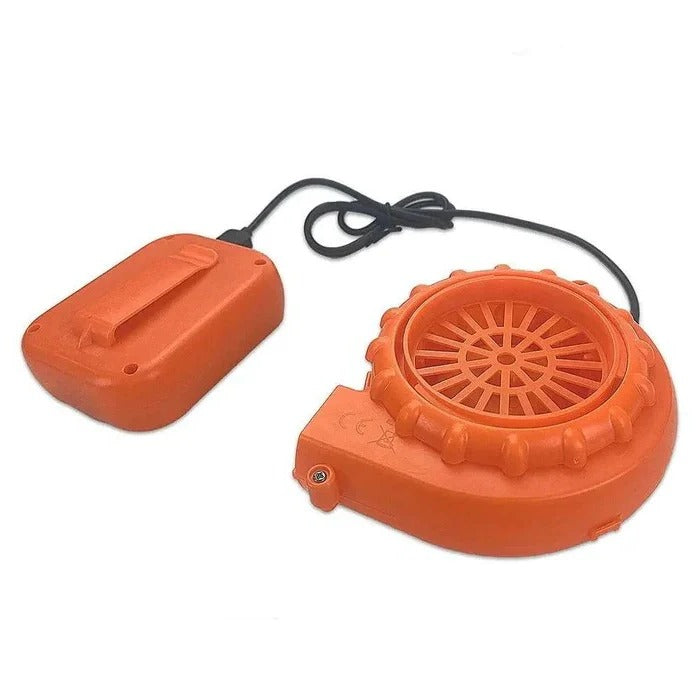 The blower produces a low hum during operation, which is typical for battery powered fan systems.